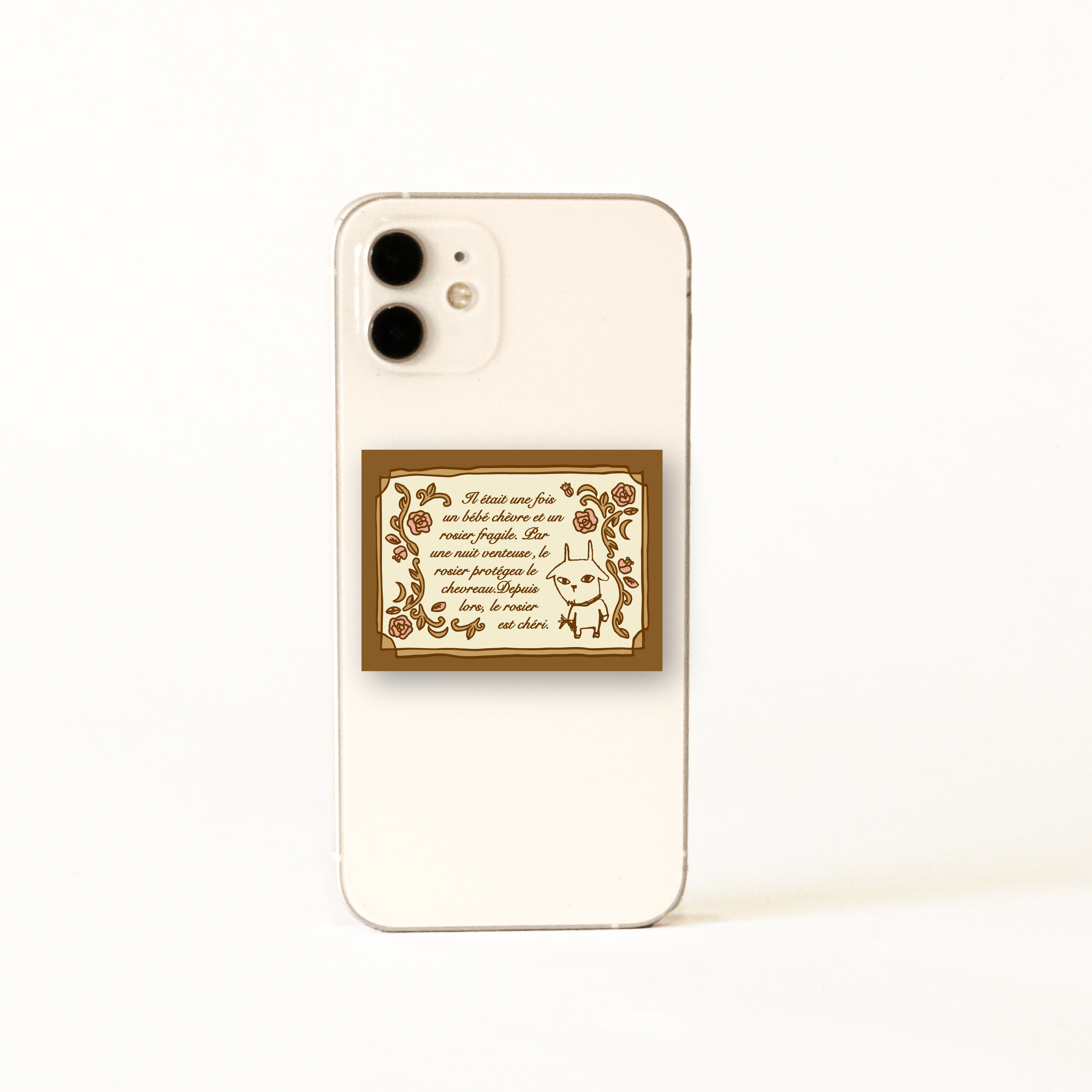 イボンヌからのメッセージが書かれた、おしゃれなステッカー。